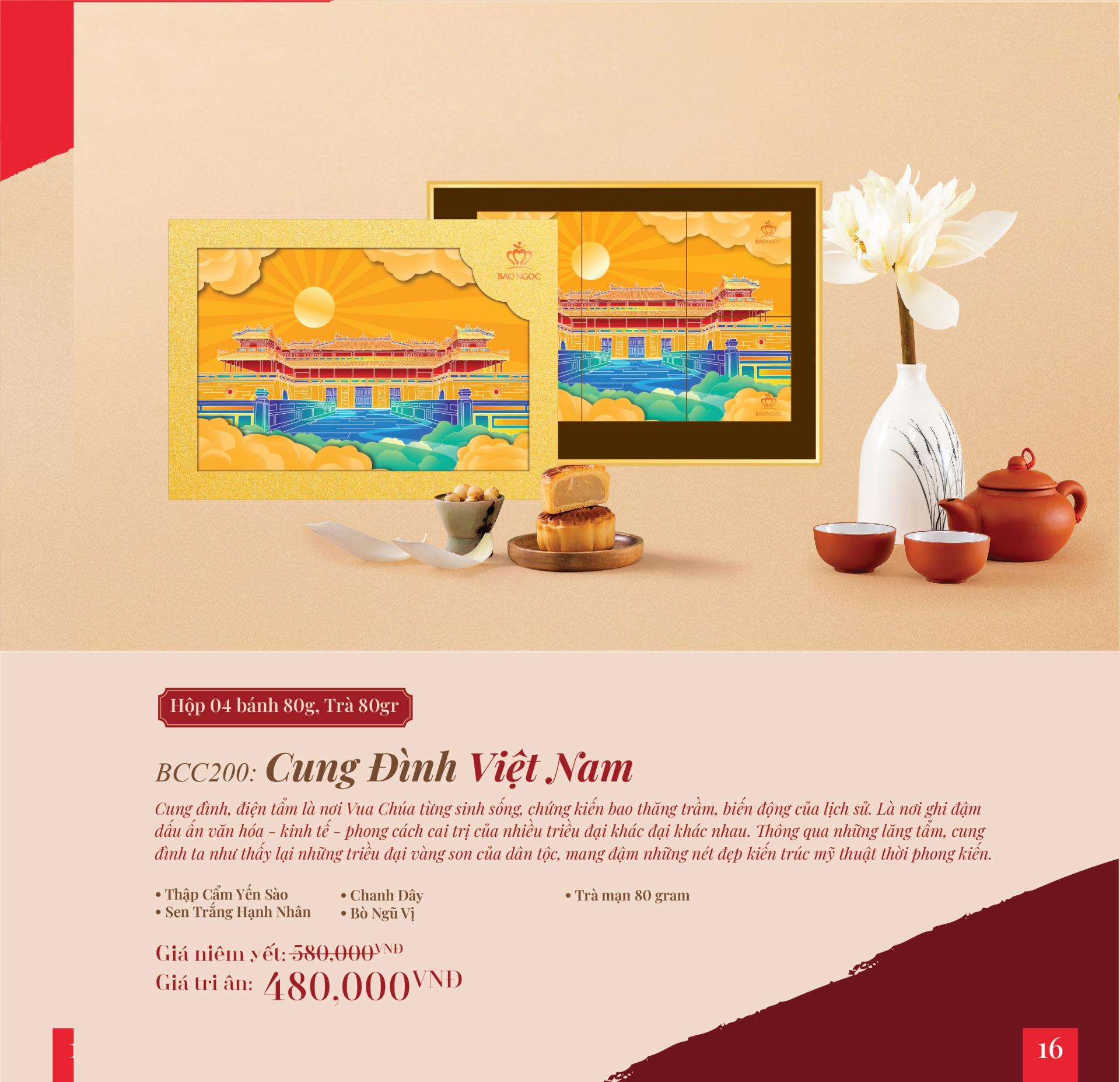Bánh Trung Thu cao cấp “Cung Đình Việt Nam" mô phỏng những Cung đình, điện tẩm nơi Vua Chúa từng sinh sống, là nơi chứng kiến bao thăng trầm, biến động của lịch sử. Và cũng là nơi ghi đậm dấu ấn văn hóa - kinh tế - phong cách cai trị của nhiều triều đại khác đại khác nhau. Thông qua những lăng tẩm, cung đình ta như thấy lại những triều đại vàng son của dân tộc, mang đậm những nét đẹp kiến trúc mỹ thuật thời phong kiến.
